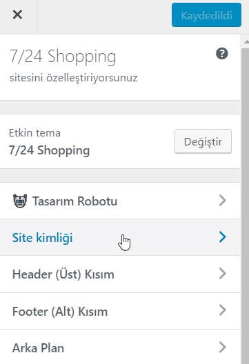 Görünüm > Özelleştir alanından Site başlığı, açıklama, logo, favicon değişmini yapabilirsiniz.