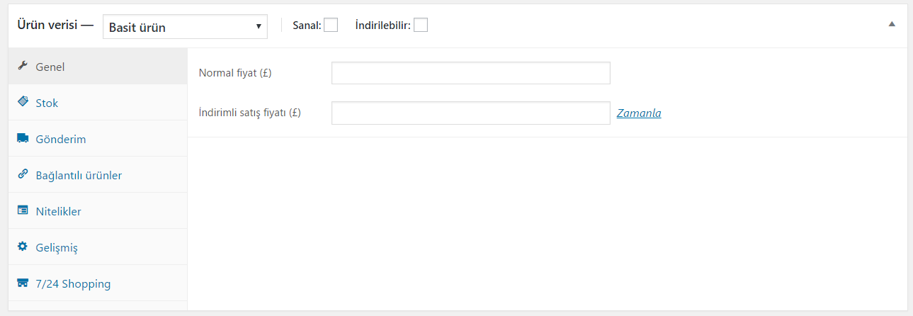 İlk önce ekleyeceğiniz ürünün hangi tipte olacağına karar vermelisiniz.